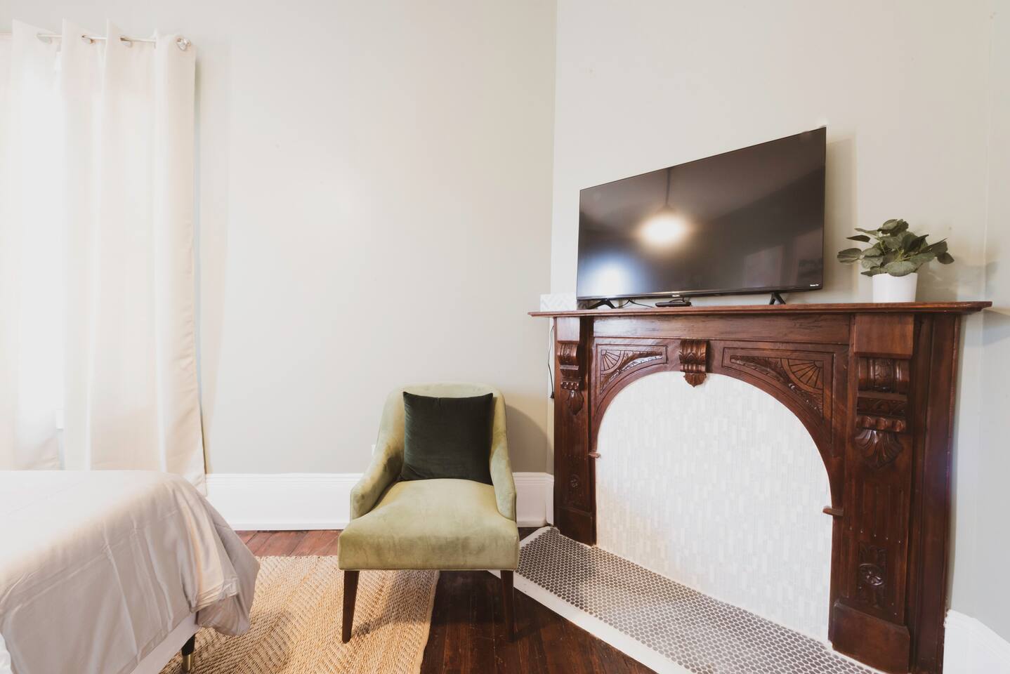 The Pulaski Room is newly furnished, renovated, and offers plenty of amenities. It includes a queen bed, a workspace, and your own Roku Smart TV. This bedroom is 1 of 3 bedrooms in this home. While this bedroom is entirely private to you, each bedroom is its own Airbnb listing, so all common areas (kitchen, bathrooms, living room, etc.) may be shared with other Airbnb guests. The home includes 2 full bathrooms. You have access to a full kitchen stocked with basic cookware, appliances, and a Keurig. There is no formal dining area. There's a lovely patio overlooking the street as well. This listing is a great fit for young couples or travelers who have previous experience booking private bedrooms within a shared space. It’s likely that on busy weekends or popular travel times that you’ll be sharing the home with other Airbnb guests and may interact with them in passing. This is a shared space, and we ask that all of our guests are courteous and respectful. Please note that we cannot be responsible for the behavior of other guests. There is an electronic keypad on the front door for convenient self check-in. Each bedroom also has its own electronic lock for additional peace of mind. Parking: There is free, on-street parking available. This is very common in Savannah - if you decide to stay downtown, you will have a very hard time finding off-street parking. There is usually ample parking available, but it is first come, first served and there are no reserved spaces. We cannot guarantee parking spaces, or enough space for trailers, U-Hauls, boats, etc. Please be advised of weekly street cleaning - there are signs that indicate which day of the week the street cleaning is, and if you happen to stay during street cleaning, you can just park on the opposite side of the street. Quiet Hours: This is a residential neighborhood. Please be advised that we ask all guests to respect 10PM quiet hours every night of the week. Any violations may result in a formal report on Airbnb or an early termination of your reservation. Any unapproved late checkouts may result in additional fees. There is a $50 shipping fee for any items that you leave behind and need shipped back to you. You're within walking distance to historic downtown and many Savannah staples, including Sentient Bean, The Collins Quarter Cafe, and Brighter Day Natural Foods Market. Grab dinner at Local 11Ten or Betty Bombers. Spend the day exploring SCAD buildings and beautiful Savannah squares all without a car. A quick 5 minute Uber ride to River Street and about a 25 minute drive to Tybee Island! I’d recommend this home to anyone looking to come to Savannah to have a great time and experience the city as locally and authentically as possible! If a residential neighborhood filled with art students and families of folks who look differently than you will make you uncomfortable, then I’d recommend a hotel. If things like dust on blinds, leaves on the patio, or scuffs on the stairs are what will determine whether or not you enjoy your stay, I’d also recommend a hotel. It just depends on what you’re looking for as a visitor, and if you’re unsure about what may be the most suitable for you and your needs, we're happy to chat with you at any point to help you determine that! STVR Permit # 02232