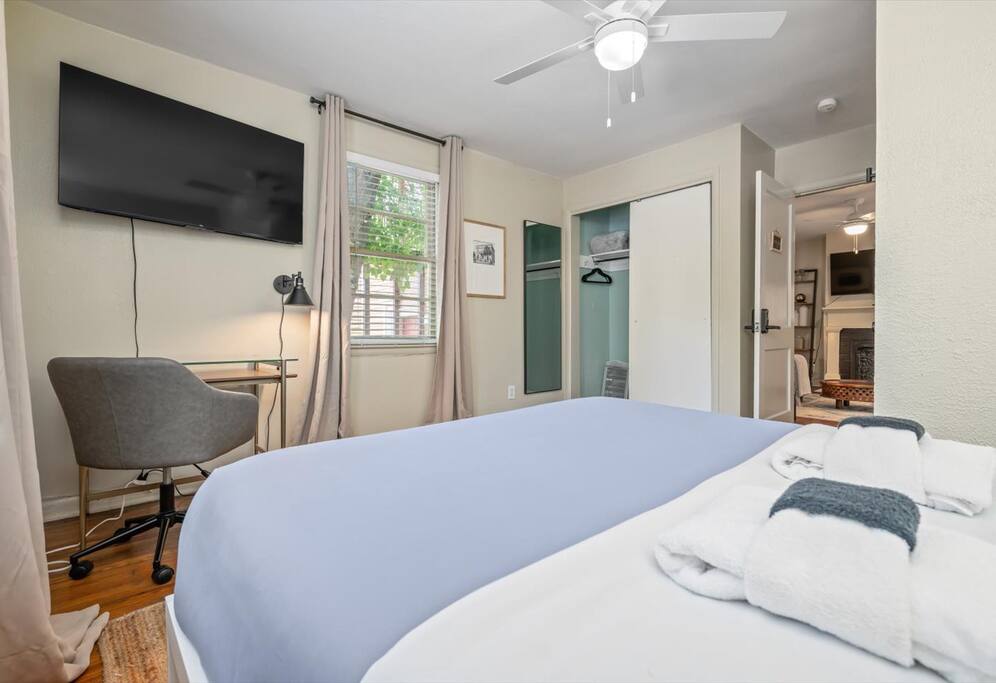 ☆☆ HIGHLIGHTS ☆☆ ✔ Private bedroom w/ ensuite bathroom in shared 3-bedroom home ✔ Private ensuite bathroom w/ walk-in shower + essential toiletries ✔ Queen size bed w/ 12” memory foam mattress + Roku TV ✔ Dedicated workspace ✔ Shared, main bathroom + fresh towels + essential toiletries ✔ Shared, full kitchen w/ modern appliances ✔ Keurig coffee maker + complimentary K-cups ✔ Open-concept, shared living area + 55” big-screen Roku TV ✔ Hi-speed Wi-Fi w/ speeds up to 288 Mbps ✔ Full-size washer + dryer (in-unit) + laundry pods + iron ✔ Dog-friendly (please no cats); pet fee applies ✔ Free DOT shuttle nearby Eager to Read More? Here Are A Few Kind Words from Our Previous Guests: “what a wonderful way to get to know this city. right there in the heart of savannah, this place is a gem. you won't be disappointed.” - Kylun “The room and the stay was exactly what we needed. This was our first time to Savannah and have a clean quiet place to be in between all the sightseeing we did made for a great experience. The price was well worth the accommodations and experience. Thank you” – Matt “we had a great stay, Thank you. it was late when we checked in after a long drive and we loved the easy check in and Comfy stay” - Sherry ☆☆ YOUR HOME AWAY FROM HOME ☆☆ Located in the heart of Savannah! Enjoy the convenience of a comfortable stay in a walkable city location. Live like a local and take a stroll beneath the Spanish moss and grab an amazing brunch at The Collins Quarter Cafe, tour SCAD, or visit the Saturday morning Forsyth farmer's market! This spacious private bedroom is 1 of 3 bedrooms in a shared home. While this bedroom is entirely private to you, each bedroom is its own Airbnb listing, so all common areas (kitchen, bathroom, living room, laundry room) may be shared with other Airbnb guests. ★★ BEDROOM ★★ Carrington Room is a spacious, newly furnished, private bedroom, with ensuite bathroom and a dedicated workspace, queen size bed, with a comfortable 12” Zinus Green Tea memory foam mattress, premium, 400 thread count sheets, electronic door lock, and plenty of amenities for a relaxing stay while visiting Savannah’s historic downtown. ✔ 12” Zinus Green Tea memory foam mattress ✔ 400 thread count sheets + extra pillows and blanket ✔ Dedicated workspace w/ chair + Hi-speed Wi-Fi ✔ Roku TV + Netflix ✔ Huge closet + full-length mirror ✔ Electronic door lock ★★ BATHROOMS ★★ Both the main, shared bathroom, and Carrington Room’s private, ensuite bathroom feature modern amenities and complimentary toiletries, providing you with everything you need for a relaxing stay. ✔ Walk-in shower w/ 10” rain-head shower + handheld shower ✔ Essential toiletries (shampoo + conditioner + body wash) ✔ Hair dryer ✔ Fresh towels ★★ KITCHEN & DINING ★★ When you’re not discovering the local restaurants, the fully equipped shared kitchen is the perfect place to whip up light meal. You’ll find everything you’ll need, including ample cookware and dishware as well as a Keurig coffee machine with complimentary coffee to start your day. ✔ Glass-top electric stove, oven, dishwasher, and microwave ✔ Full-size fridge and freezer ✔ Keurig coffee maker + complimentary Keurig coffee pods ✔ Essential cookware + dinnerware ✔ Bistro table w/ seating for two (There is no formal dining room) ★★ LIVING ROOM ★★ The home’s shared, open concept living room is the perfect place to relax and unwind in front of a big-screen Roku smart TV. ✔ 55” flat screen Roku smart TV + Netflix ✔ Comfy sofa ✔ Fireplace feature (no fires) ★★ ACTIVITIES/ATTRACTIONS ★★ Savannah’s history, culture, and natural beauty awaits you, where around every corner reveals a new adventure waiting to be discovered. The Victorian District's short city blocks and vibrant mix of residential, commercial establishments and parks make it one of Savannah's most walkable neighborhoods. Check out some of the unforgettable experiences awaiting you: ✹ Savannah Historic District - Spend an afternoon exploring the treasure trove of beautiful period architecture that gives Savannah its distinctive southern charm. Stroll along the tree-lined streets and explore the 22 historic squares, each with its own individual character. ✹ Savannah College of Art and Design (SCAD) - The Victorian District is home to several SCAD buildings, many of which are in historic buildings that have been repurposed into classrooms and galleries. ✹ River Street - For a vibrant waterfront experience, head to River Street. This bustling area features cobblestone streets lined with shops, restaurants, and galleries. You can enjoy panoramic views of the Savannah River, watch ships pass by, and indulge in some local cuisine. Check out our Savannah guidebooks for more great recommendations for some of our favorite, most popular local attractions, restaurants, live music, beaches & parks! ☆☆ Book Today & Let Us Take Care of You in Savannah! ☆☆