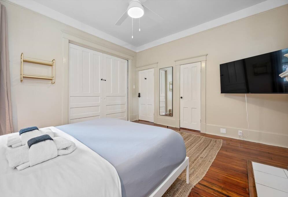 ✔ DIVERSITY - This home is in a diverse, residential neighborhood and is ideal for guests seeking to enjoy an authentic Savannah experience. ✔ PETS - We are pet friendly, but please no cats. Please be respectful of other guests, who may be staying in the home, and ensure your pet does not cause damage to the unit. There is a $50 pet fee if you decide to bring your pet along. We will request the pet fee directly through Airbnb, or you can add your pet to the guest count. ✔ SHARED SPACE - This private bedroom is a great fit for young couples or travelers who have previous experience booking private bedrooms within a shared space. It’s likely that on busy weekends or popular travel times that you’ll be sharing the home with other Airbnb guests and may interact with them in passing. Please note that we cannot be responsible for the behavior of other guests, but we ask that all our guests clean up after themselves in all common spaces and are courteous and respectful. ✔ QUIET HOURS - This is a residential neighborhood. We respectfully ask that you observe quiet hours from 10PM, every night of the week. Violations of this rule may result in a formal report filed on Airbnb or early termination of your booking. ✔ POTENTIAL FOR NOISE - This bedroom is in the lower unit of a 2-story duplex home located on Anderson St, a very busy road in downtown Savannah. If you are sensitive to street noise, we highly suggest packing earplugs or utilizing a white noise app. This is a historic home, and the walls are thin and not soundproof. It is possible that you may hear the upstairs guests at some point during your stay. ✔ STREET CLEANING - Street cleaning takes place weekly. The posted street signs will indicate which day of the week cleaning occurs. If you find street cleaning is occurring on a street on which you are parked, you may find alternate parking on an adjacent street where street sweeping is not taking place. ✔ FREE DOT SHUTTLE - Guests can use the Savannah’s Free DOT trolley service to get around downtown Savannah. The nearest stop is just a short four blocks walk from the home, on Drayton Street. ✔ OPEN CONTAINER POLICY - Downtown Savannah has an open container policy (plastic only) which allows you to walk around and drink in the downtown Historic District, north of Forsyth Park, only. If you want to spend a night out on the town, West Congress Street is home to a high concentration of bars. ✔ LATE CHECK-OUT - Please get in contact with us should you require a late check-out and we will do our best to accommodate you. Failure to notify us in advance of a late check-out may result in additional fees. ✔ ITEMS LEFT AFTER CHECK-OUT - Upon check-out, please check the home thoroughly for your personal belongings. A $50 shipping fee will be charged to ship items back to you. ✔ PEST CONTROL - The unit benefits from regular pest control, but you may encounter outdoor bugs because of our beautiful, lush, leafy-green surroundings. At Starland Stays, we host multiple properties throughout Savannah! If you’re looking for something smaller, larger, or more specific, please get in touch to discuss your needs and we’ll help you find the best accommodation to meet your requirements.