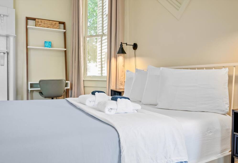 Pewter Room is a newly furnished private bedroom, with a dedicated workspace, in a Victorian-era home, located in the heart of Savannah’s downtown Victorian District. You’ll be walking distance to SCAD’s Anderson Hall, a short 10-minute stroll to Forsyth Park, the free DOT trolley, and many popular local restaurants. ✹ SCAD’s Anderson Hall - 1 Min Walk ✹ Forsyth Park - 10 Min walk ✹ River Street - 9 Min Drive STVR Permit 02759 Create Lasting Memories in Savannah with Us & Learn More Below!