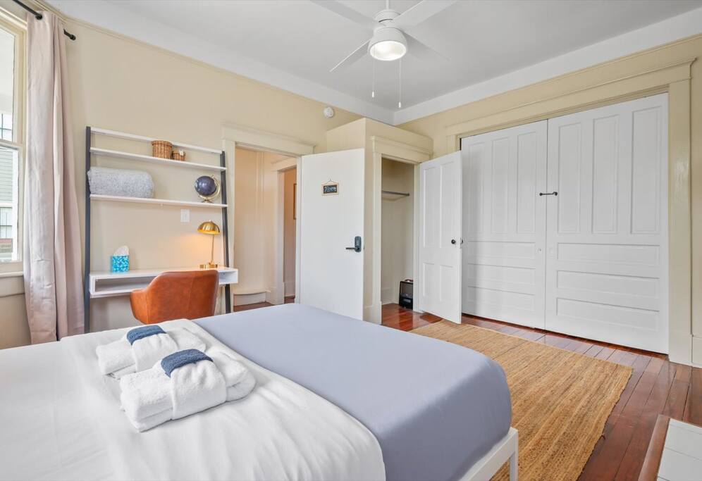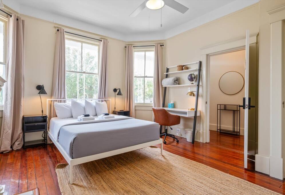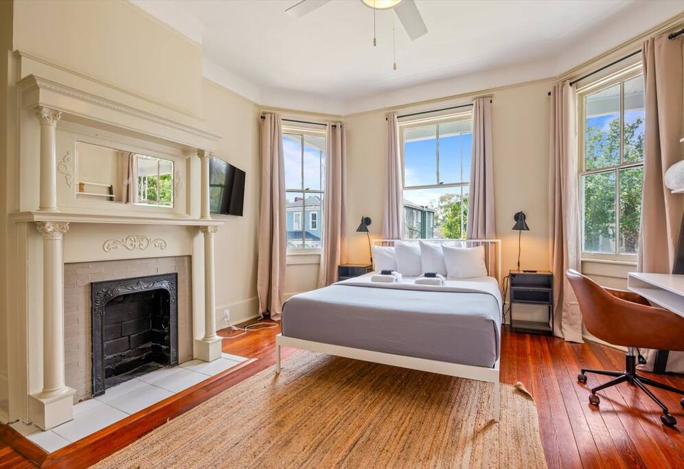 Revere Room is a newly furnished, private bedroom, with a dedicated workspace, in a Victorian-era home, located in the heart of Savannah’s downtown Victorian District. You’ll be walking distance to SCAD’s Anderson Hall, a short 10-minute stroll to Forsyth Park, the free DOT trolley, and many popular local restaurants. ✹ SCAD’s Anderson Hall - 1 Min Walk ✹ Forsyth Park - 10 Min walk ✹ River Street - 9 Min Drive STVR Permit 02759 Create Lasting Memories in Savannah with Us & Learn More Below!