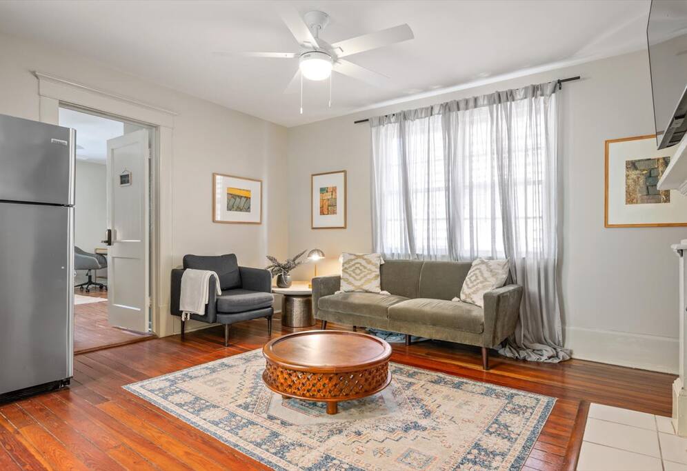 ✔ DIVERSITY - This home is in a diverse, residential neighborhood and is ideal for guests seeking to enjoy an authentic Savannah experience. ✔ PETS - We are pet friendly, but please no cats. Please be respectful of other guests, who may be staying in the home, and ensure your pet does not cause damage to the unit. There is a $50 pet fee if you decide to bring your pet along. We will request the pet fee directly through Airbnb, or you can add your pet to the guest count. ✔ SHARED SPACE - This private bedroom is a great fit for young couples or travelers who have previous experience booking private bedrooms within a shared space. It’s likely that on busy weekends or popular travel times that you’ll be sharing the home with other Airbnb guests and may interact with them in passing. Please note that we cannot be responsible for the behavior of other guests, but we ask that all our guests clean up after themselves in all common spaces and are courteous and respectful. ✔ QUIET HOURS - This is a residential neighborhood. We respectfully ask that you observe quiet hours from 10PM, every night of the week. Violations of this rule may result in a formal report filed on Airbnb or early termination of your booking. ✔ POTENTIAL FOR NOISE - This bedroom is in the lower unit of a 2-story duplex home located on Anderson St, a very busy road in downtown Savannah. If you are sensitive to street noise, we highly suggest packing earplugs or utilizing a white noise app. This is a historic home, and the walls are thin and not soundproof. It is possible that you may hear the upstairs guests at some point during your stay. ✔ STREET CLEANING - Street cleaning takes place weekly. The posted street signs will indicate which day of the week cleaning occurs. If you find street cleaning is occurring on a street on which you are parked, you may find alternate parking on an adjacent street where street sweeping is not taking place. ✔ FREE DOT SHUTTLE - Guests can use the Savannah’s Free DOT trolley service to get around downtown Savannah. The nearest stop is just a short four blocks walk from the home, on Drayton Street. ✔ OPEN CONTAINER POLICY - Downtown Savannah has an open container policy (plastic only) which allows you to walk around and drink in the downtown Historic District, north of Forsyth Park, only. If you want to spend a night out on the town, West Congress Street is home to a high concentration of bars. ✔ LATE CHECK-OUT - Please get in contact with us should you require a late check-out and we will do our best to accommodate you. Failure to notify us in advance of a late check-out may result in additional fees. ✔ ITEMS LEFT AFTER CHECK-OUT - Upon check-out, please check the home thoroughly for your personal belongings. A $50 shipping fee will be charged to ship items back to you. ✔ PEST CONTROL - The unit benefits from regular pest control, but you may encounter outdoor bugs because of our beautiful, lush, leafy-green surroundings. At Starland Stays, we host multiple properties throughout Savannah! If you’re looking for something smaller, larger, or more specific, please get in touch to discuss your needs and we’ll help you find the best accommodation to meet your requirements.