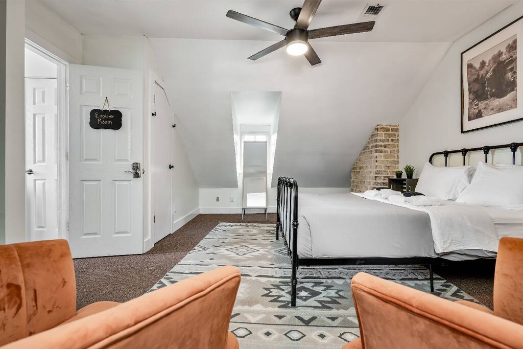 This home is newly furnished and offers plenty of amenities. The interior was designed by SCAD alumni, and the home features original art from the SCAD grads. It includes 3 bedrooms, a living room, 1 full bathroom, and 2 Roku Smart TVs. The full kitchen is perfect for preparing light meals and includes a stove, oven, a fridge/freezer, microwave, and Keurig. It's stocked with cooking essentials like pots, pans, dishes, glasses, and mugs. The Explorer Room also has its own Roku Smart TV. This bedroom is located in a loft-style upstairs of the main floor, offering you a bit more privacy from other guests who may have booked the other bedrooms. The back patio is gorgeous, and a great place to enjoy your morning coffee! This listing is a great fit for young couples or travelers who have previous experience booking private bedrooms within a shared space. It’s likely that on busy weekends or popular travel times that you’ll be sharing the home with other Airbnb guests and may interact with them in passing. Each bedroom is listed as its own Airbnb for travelers to book. This is a shared space, and we ask that all of our guests are courteous and respectful. Please note that we cannot be responsible for the behavior of other guests. There is an electronic keypad on the front door for convenient self check-in. Each bedroom also has its own electronic lock for additional peace of mind. Parking: There is free, on-street parking available. This is very common in Savannah - if you decide to stay downtown, you will have a very hard time finding off-street parking. There is usually ample parking available, but it is first come, first served and there are no reserved spaces. We cannot guarantee parking spaces, or enough space for trailers, U-Hauls, boats, etc. Please be advised of weekly street cleaning - there are signs that indicate which day of the week the street cleaning is, and if you happen to stay during street cleaning, you can just park on the opposite side of the street. Quiet Hours: This is a residential neighborhood. Please be advised that we ask all guests to respect 10PM quiet hours every night of the week. Any violations may result in a formal report on Airbnb or an early termination of your reservation. Any unapproved late checkouts may result in additional fees. There is a $50 shipping fee for any items that you leave behind and need shipped back to you. You're within walking distance to historic downtown and many Savannah staples, including Fox & Fig, Hitch, Peregrin, and J. Christopher's. Spend the day exploring SCAD buildings, beautiful Savannah squares, or take a tour of the Cathedral, all without a car. A quick 6 minute Uber ride to River Street and about a 25 minute drive to Tybee Island! I’d recommend this home to anyone looking to come to Savannah to have a great time and experience the city as locally and authentically as possible! If a residential neighborhood filled with art students and families of folks who look differently than you will make you uncomfortable, then I’d recommend a hotel. If things like dust on blinds, leaves on the patio, or scuffs on the stairs are what will determine whether or not you enjoy your stay, I’d also recommend a hotel. It just depends on what you’re looking for as a visitor, and if you’re unsure about what may be the most suitable for you and your needs, we're happy to chat with you at any point to help you determine that! STVR Permit # 02189
