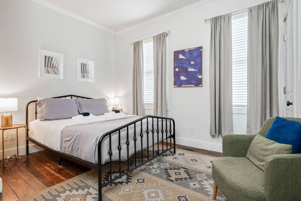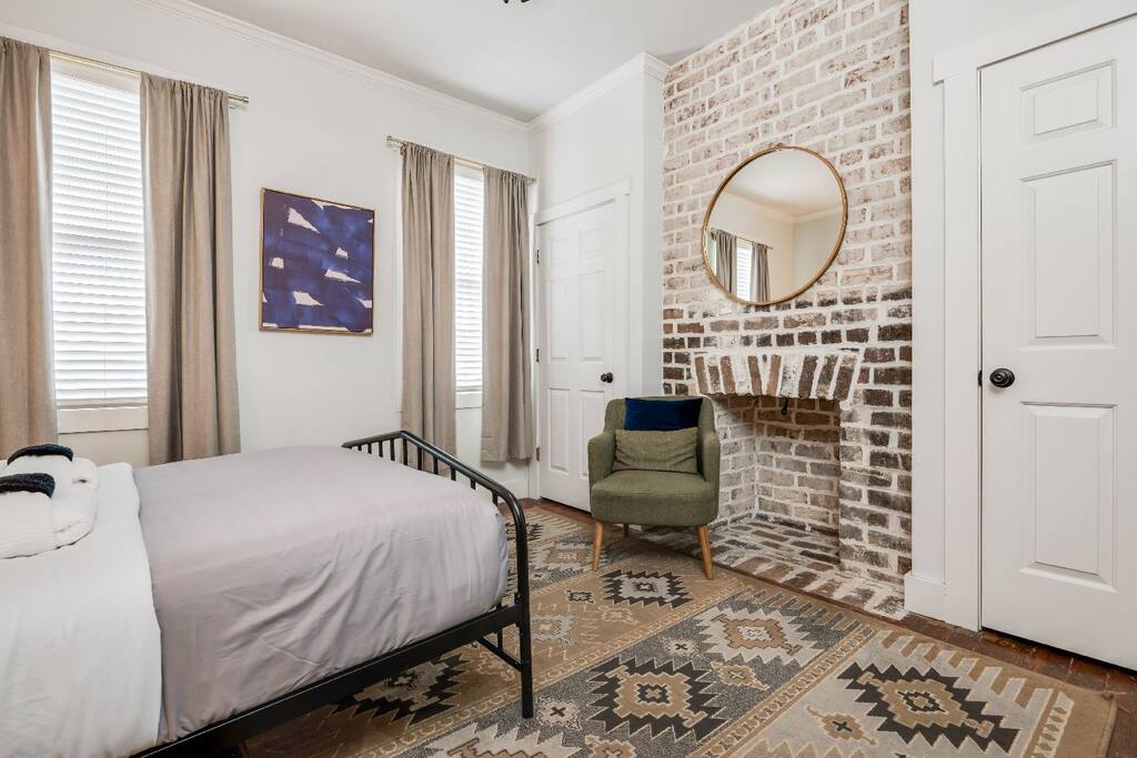 This home is newly furnished and offers plenty of amenities. The interior was designed by SCAD alumni, and the home features original art from the SCAD grads. It includes 2 bedrooms, a living room, 1 full bathroom, and 1 Roku Smart TV. The full kitchen is perfect for preparing light meals and includes a stove, oven, a fridge/freezer, microwave, and Keurig. It's stocked with cooking essentials like pots, pans, dishes, glasses, and mugs. The back patio is gorgeous, and a great place to enjoy your morning coffee! This listing is a great fit for young couples or travelers who have previous experience booking private bedrooms within a shared space. It’s likely that on busy weekends or popular travel times that you’ll be sharing the home with other Airbnb guests and may interact with them in passing. Each bedroom is listed as its own Airbnb for travelers to book. This is a shared space, and we ask that all of our guests are courteous and respectful. Please note that we cannot be responsible for the behavior of other guests. There is an electronic keypad on the front door for convenient self check-in. Each bedroom also has its own electronic lock for additional peace of mind. Parking: There is free, on-street parking available. This is very common in Savannah - if you decide to stay downtown, you will have a very hard time finding off-street parking. There is usually ample parking available, but it is first come, first served and there are no reserved spaces. We cannot guarantee parking spaces, or enough space for trailers, U-Hauls, boats, etc. Please be advised of weekly street cleaning - there are signs that indicate which day of the week the street cleaning is, and if you happen to stay during street cleaning, you can just park on the opposite side of the street. Quiet Hours: This is a residential neighborhood. Please be advised that we ask all guests to respect 10PM quiet hours every night of the week. Any violations may result in a formal report on Airbnb or an early termination of your reservation. Any unapproved late checkouts may result in additional fees. There is a $50 shipping fee for any items that you leave behind and need shipped back to you. You're within walking distance to historic downtown and many Savannah staples, including Fox & Fig, Hitch, Peregrin, and J. Christopher's. Spend the day exploring SCAD buildings, beautiful Savannah squares, or take a tour of the Cathedral, all without a car. A quick 6 minute Uber ride to River Street and about a 25 minute drive to Tybee Island! I’d recommend this home to anyone looking to come to Savannah to have a great time and experience the city as locally and authentically as possible! If a residential neighborhood filled with art students and families of folks who look differently than you will make you uncomfortable, then I’d recommend a hotel. If things like dust on blinds, leaves on the patio, or scuffs on the stairs are what will determine whether or not you enjoy your stay, I’d also recommend a hotel. It just depends on what you’re looking for as a visitor, and if you’re unsure about what may be the most suitable for you and your needs, we're happy to chat with you at any point to help you determine that! STVR Permit # 02187