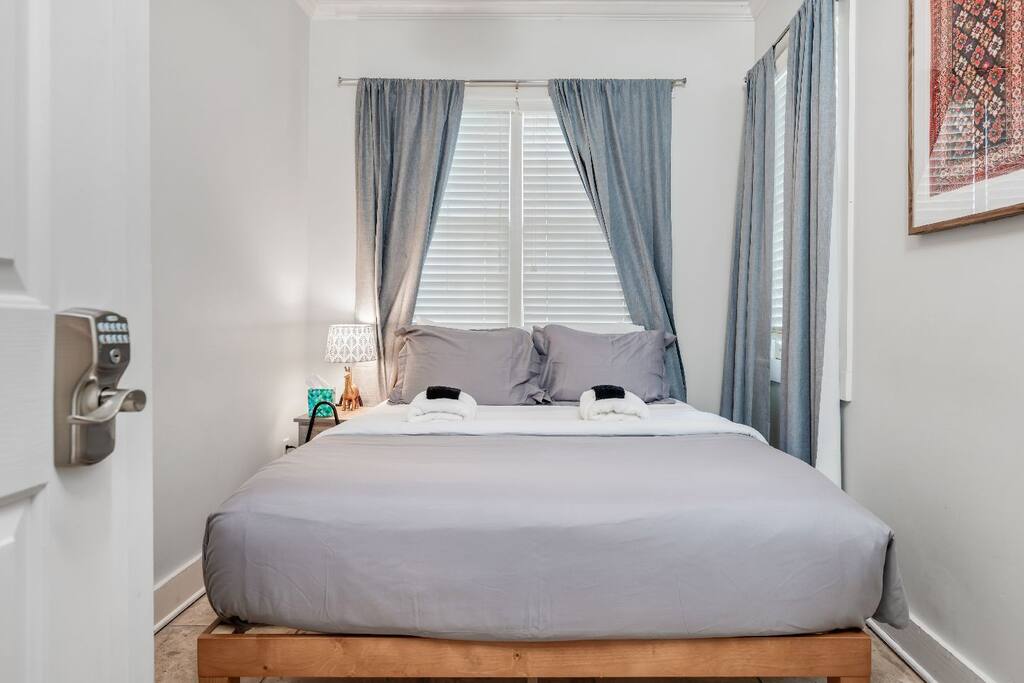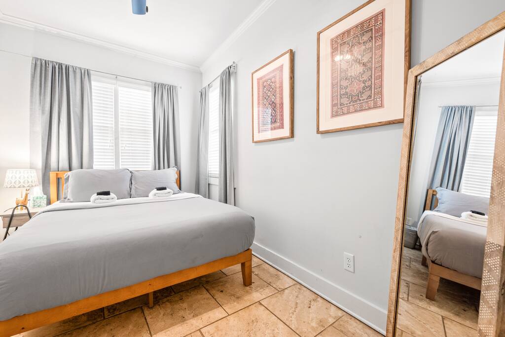 This home is newly furnished and offers plenty of amenities. The interior was designed by SCAD alumni, and the home features original art from the SCAD grads. It includes 2 bedrooms, a living room, 1 full bathroom, and 1 Roku Smart TV. The full kitchen is perfect for preparing light meals and includes a stove, oven, a fridge/freezer, microwave, and Keurig. It's stocked with cooking essentials like pots, pans, dishes, glasses, and mugs. The back patio is gorgeous, and a great place to enjoy your morning coffee! This listing is a great fit for young couples or travelers who have previous experience booking private bedrooms within a shared space. It’s likely that on busy weekends or popular travel times that you’ll be sharing the home with other Airbnb guests and may interact with them in passing. Each bedroom is listed as its own Airbnb for travelers to book. This is a shared space, and we ask that all of our guests are courteous and respectful. Please note that we cannot be responsible for the behavior of other guests. There is an electronic keypad on the front door for convenient self check-in. Each bedroom also has its own electronic lock for additional peace of mind. Parking: There is free, on-street parking available. This is very common in Savannah - if you decide to stay downtown, you will have a very hard time finding off-street parking. There is usually ample parking available, but it is first come, first served and there are no reserved spaces. We cannot guarantee parking spaces, or enough space for trailers, U-Hauls, boats, etc. Please be advised of weekly street cleaning - there are signs that indicate which day of the week the street cleaning is, and if you happen to stay during street cleaning, you can just park on the opposite side of the street. Any unapproved late checkouts may result in additional fees. Quiet Hours: This is a residential neighborhood. Please be advised that we ask all guests to respect 10PM quiet hours every night of the week. Any violations may result in a formal report on Airbnb or an early termination of your reservation. There is a $50 shipping fee for any items that you leave behind and need shipped back to you. You're within walking distance to historic downtown and many Savannah staples, including Fox & Fig, Hitch, Peregrin, and J. Christopher's. Spend the day exploring SCAD buildings, beautiful Savannah squares, or take a tour of the Cathedral, all without a car. A quick 6 minute Uber ride to River Street and about a 25 minute drive to Tybee Island! I’d recommend this home to anyone looking to come to Savannah to have a great time and experience the city as locally and authentically as possible! If a residential neighborhood filled with art students and families of folks who look differently than you will make you uncomfortable, then I’d recommend a hotel. If things like dust on blinds, leaves on the patio, or scuffs on the stairs are what will determine whether or not you enjoy your stay, I’d also recommend a hotel. It just depends on what you’re looking for as a visitor, and if you’re unsure about what may be the most suitable for you and your needs, we're happy to chat with you at any point to help you determine that! STVR Permit # 02187