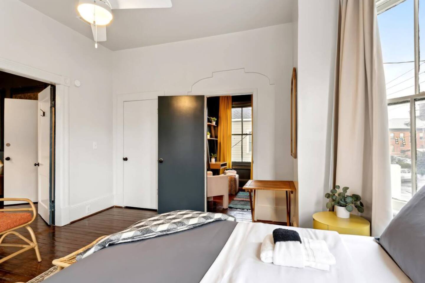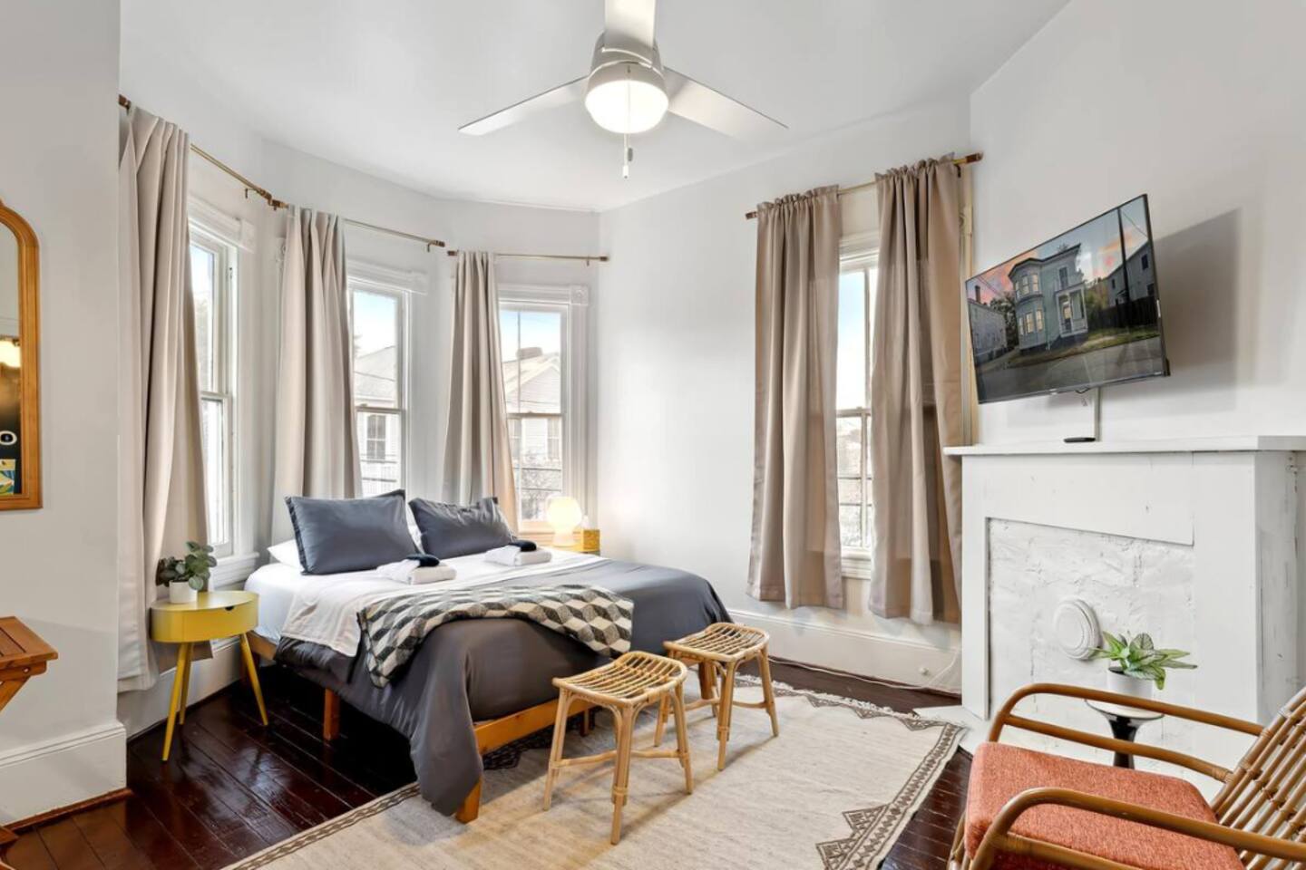 Stay in a stylish boho-chic Victorian in Savannah’s Historic Victorian District, one of the city’s most walkable neighborhoods. This beautifully preserved historic home offers a separate, light-filled office ideal for remote work or extended stays. Walk to Forsyth Park, SCAD, and Savannah’s newest restaurants, with classic Southern charm on every block. Ride the free DOT trolley to explore River Street and downtown like a local.